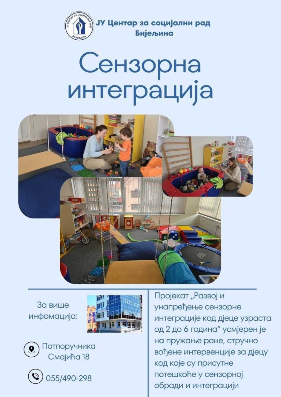 JU Centar za socijalni rad Bijeljina od 1. marta realizuje projekat “Razvoj i unapređenje senzorne integracije kod djece uzrasta od 2 do 6 godina“, usmjerenu na ranu stručnu podršku djeci sa poteškoćama u senzornoj obradi, pažnji, samoregulaciji, ponašanju i motoričkom planiranju.