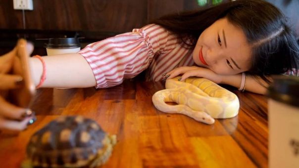 Malezijski ljubitelj gmizavaca Jap Ming Jang nada se da će posjetioci njegovog kafića prihvatiti zmije i guštere jednako kao što vole društvo pasa i mačaka.