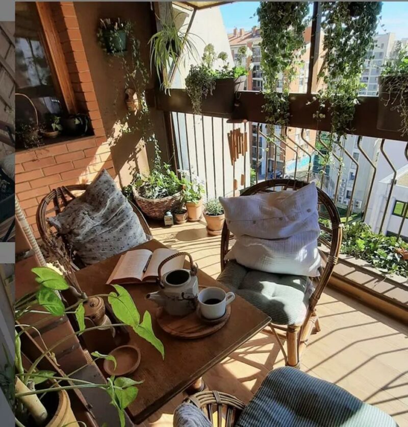 Imaćete mjesto za sjedenje i opuštanje koje dobro funkcioniše u okviru parametara manjih balkona. Dodavanje udobnih jastuka i pokrivača stvara jednostavan i prijatan prostor za opuštanje.