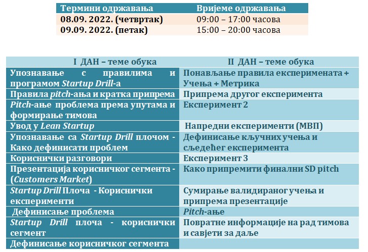 Možda ste čuli o Lean Startup metodologiji koja se temelji na principu Build-Measure-Learn, poznatom od Lean Startup -a pokrenutog od strane Erika Rajsa? Znate li kako ga primijeniti? Zašto su važne programske hipoteze i kako ih tačno definisati? Znate li ko su vaši rani korisnici, zašto su važni i kako ih pronaći? Jeste li čuli za metodologiju razvoja kupaca? Znate li kako upravljati procesom razvoja kupaca? Koja je razlika između kvalitativnih i kvantitativnih eksperimenata kupaca i kako mjeriti njihov uspjeh? Kako možete naći razliku između tačnih i netačnih intervjua korisnika i zašto je to bitno? Da li je proizvod koji ste u posljednjih 6 mjeseci razvili MVP (minimalni održivi proizvod)? Da li je bolje koristiti metodu Concierge ili Čarobnjak iz Oza?