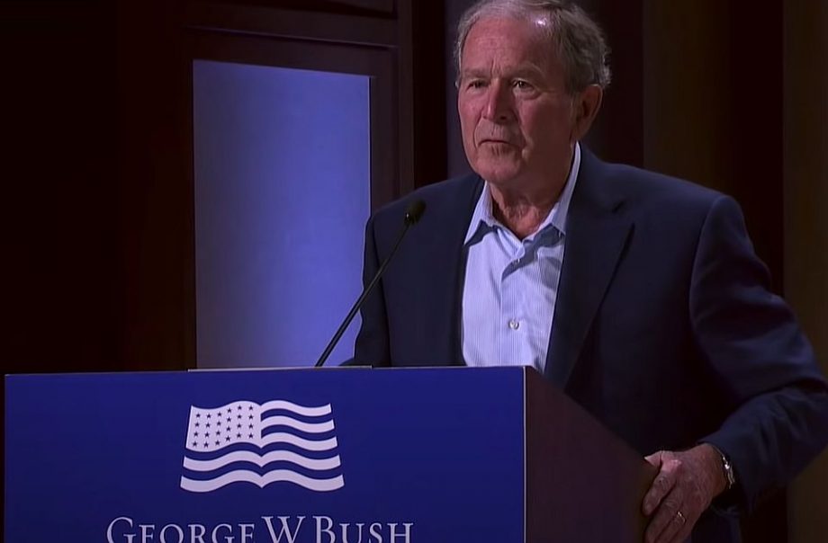Kada je Buš bio predsjednik, 2003. godine SAD su predvodile invaziju na Irak zbog sumnje na oružje na masovno uništenje, koje nikada nije pronađeno. U dugotrajnom sukobu ubijeno je nekoliko stotina hiljada ljudi, a još toliko je raseljeno.