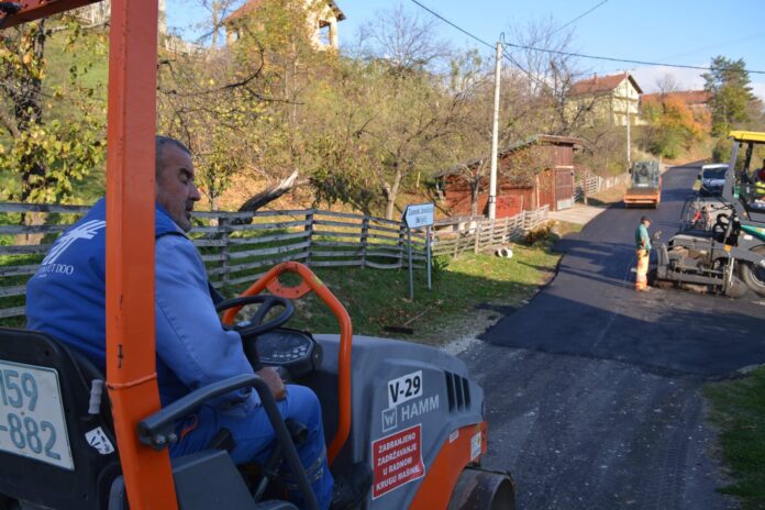 U centru sela Brusnica novim asfaltnim slojem presvučena je dionica lokalnog puta.