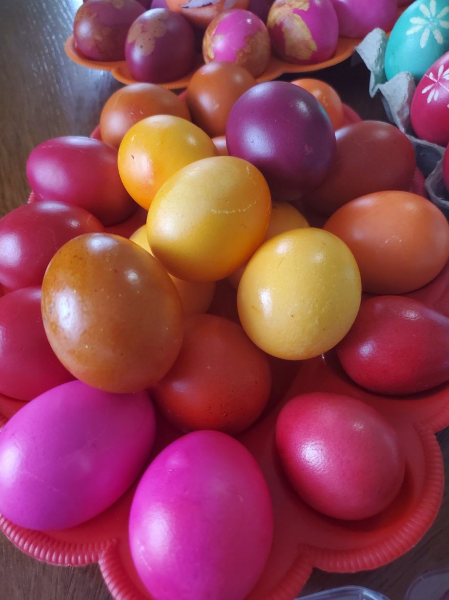“Crvena boja predstavlja simbol Hristove muke, ali takođe simboliziuje Božiju ljubav, nadu, energičnost, služenje Crkvi, duhovnu budnost, djelotvornost, milosrđe, radost života i ljubavi.Često se farbaju jaja i sa žutom bojom koja označava mir i čistoću. Žuta je i simbol nagrade i priznanja.Zelena boja koja označava plodnost, zdravlje, nadu. Farbanje u plavu boju predstavlja simbol istine, neba, dobrog zdravlja i vjernosti, a roza boja predstavlja uspjeh i zadovoljstvo. Ljubičasta označava simbol vjere, povjerenja i strpljivosti posta, dok je narandžasta simbol izdržljivosti, snage i ambicioznosti” , priča nam Lukić.