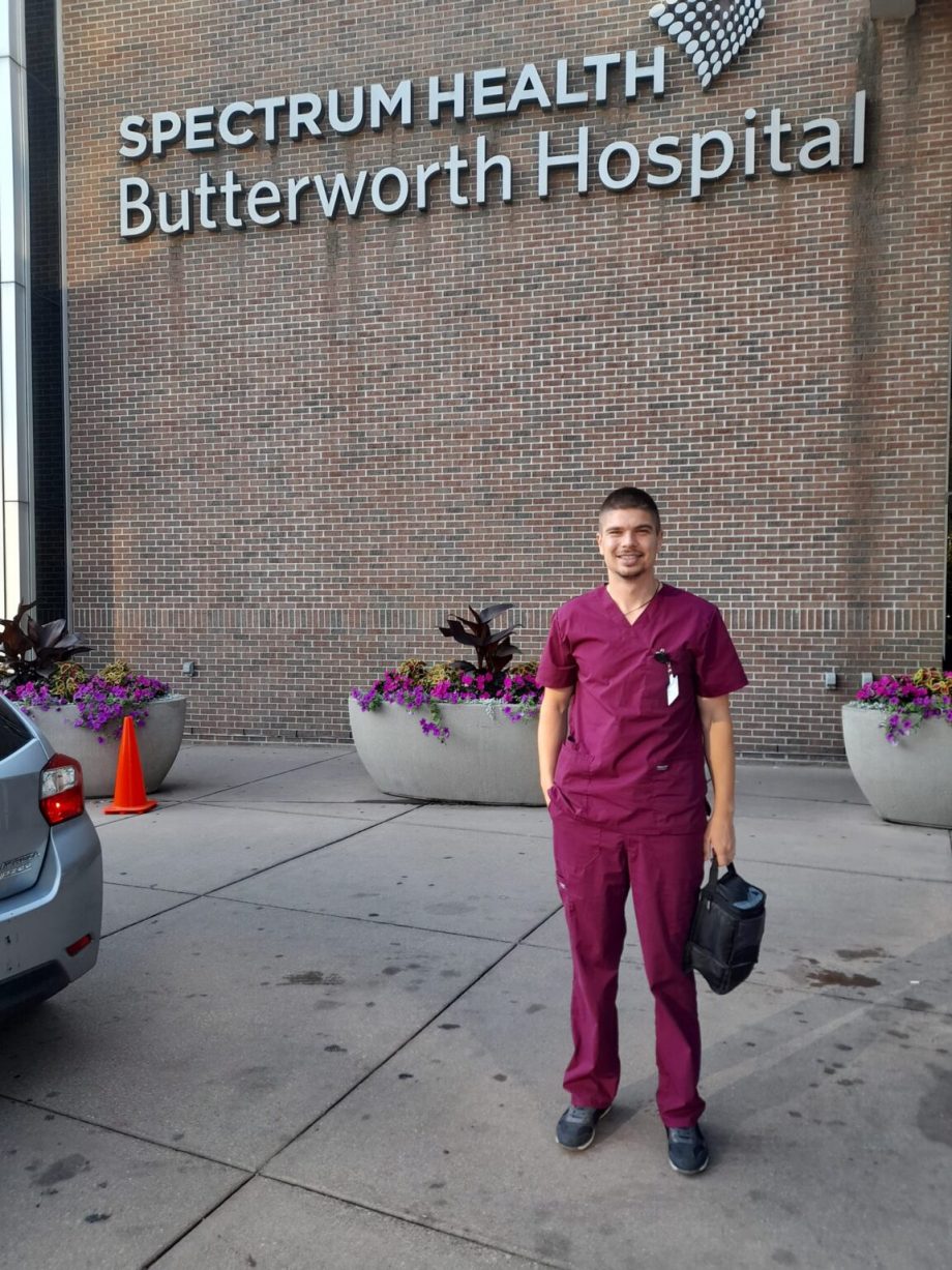 Boravio je šest sedmica u gradu Grand Rapids u državi Mičigen gdje je radio u klinici Spectrum Health Butterworth na odjeljenju Hitne medicine.