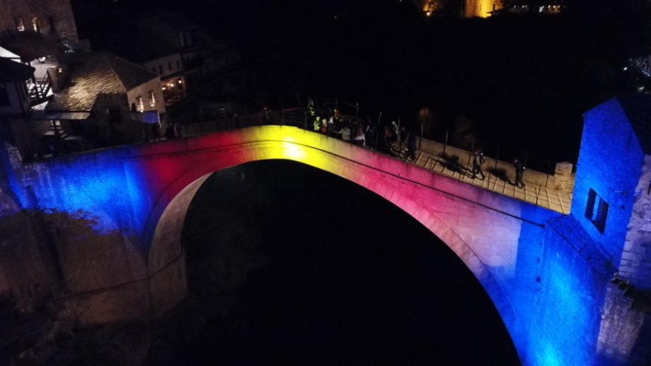 Mostarski skakači su zajedno sa predsjednikom kluba, legendarnim Lorensom Listom osvijetlili Stari most bojama Red Bulla, a u počast Matešicu izveden je i skok sa bakljama.