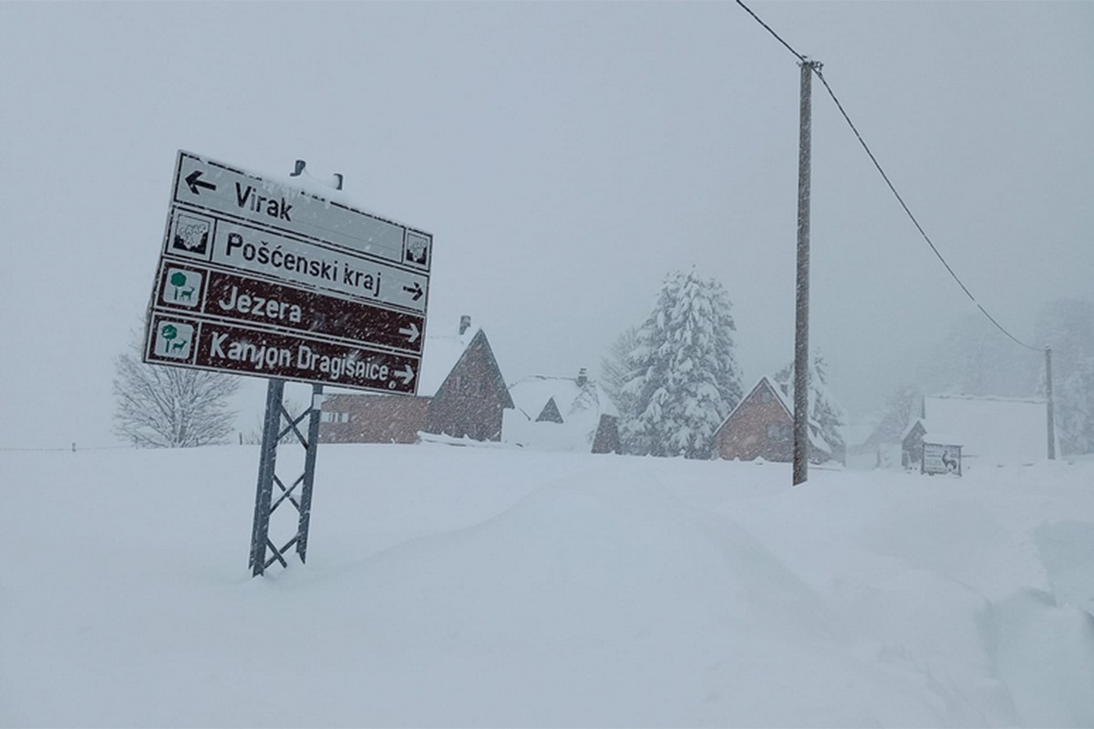 Na Žabljaku snijeg neprekidno pada. Mjerenja od 19 časova na žabljačkoj metro-stanici pokazala su da je napadao 86 centimetara.