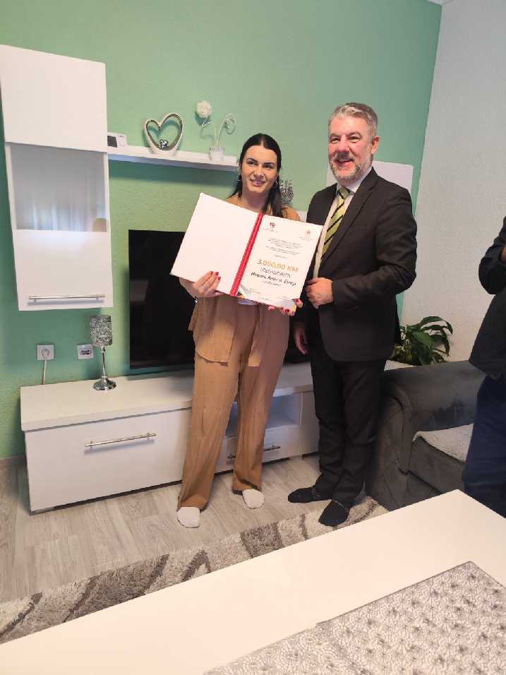 Ministar zdravlja i socijalne zaštite Republike Srpske Alen Šeranić i direktor Javnog fonda za dječiju zaštitu Nedeljko Jović posjetili su danas porodicu Godušević iz Janje koja je dobila trojke i uručili im vaučer Fonda od 3.000 KM.