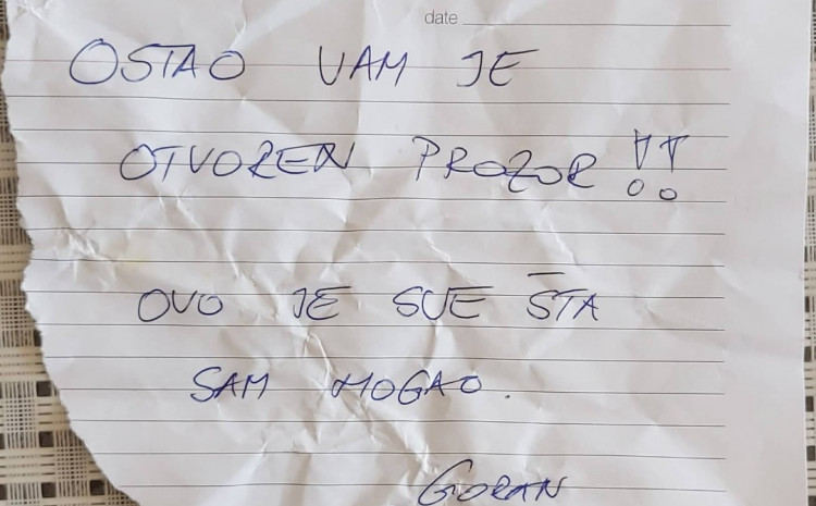 Na poruci je pisalo “Ostao vam je otvoren prozor. Ovo je sve što sam mogao”.