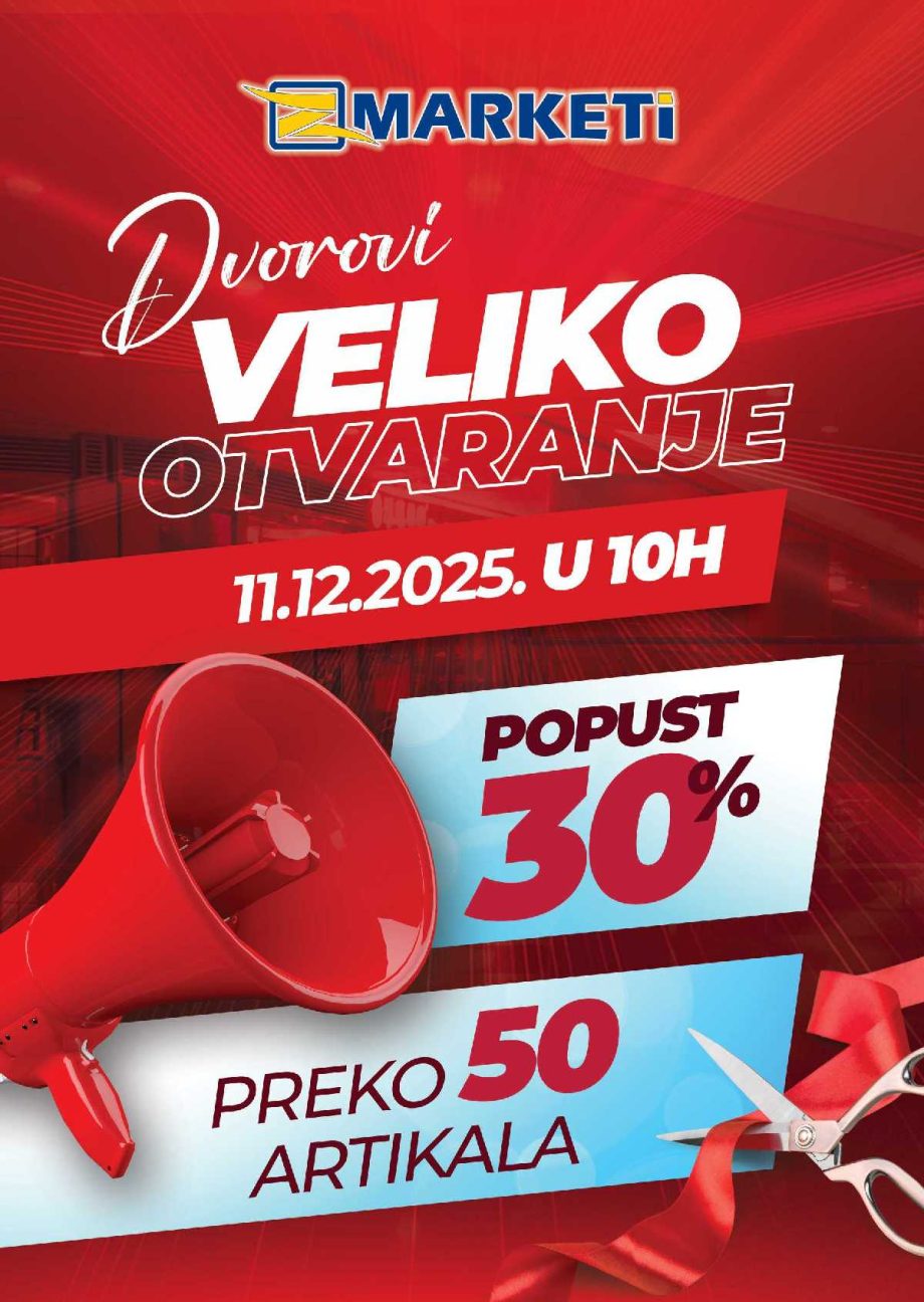 Z Marketi, trgovinski lanac koji posluje već 26 godina u Republici Srpskoj, otvaraju u četvrtak, 11. decembra, novi, potpuno novoizgrađeni objekat u Dvorovima. Market se nalazi u Karađorđevoj ulici BB, na glavnom putu Bijeljina–Rača, a svečano otvaranje zakazano je za 10.00 časova.