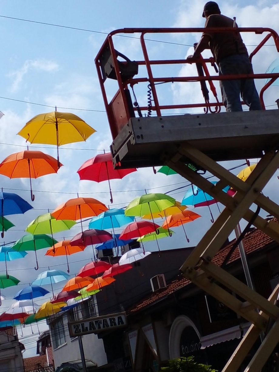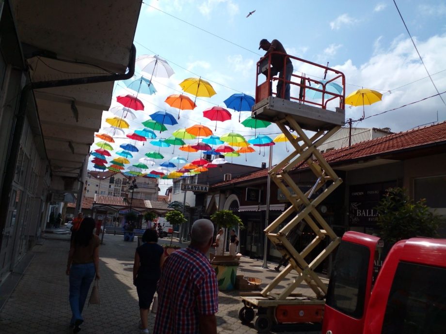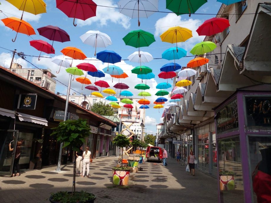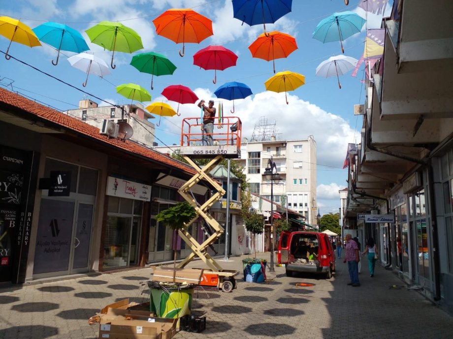 U Ulici Miloša Crnjanskog, popularnoj pješačkoj zoni počelo je dugo najavljivano postavljanje raznobojnih kišobrana koji će uljepšati ovaj dio grada.