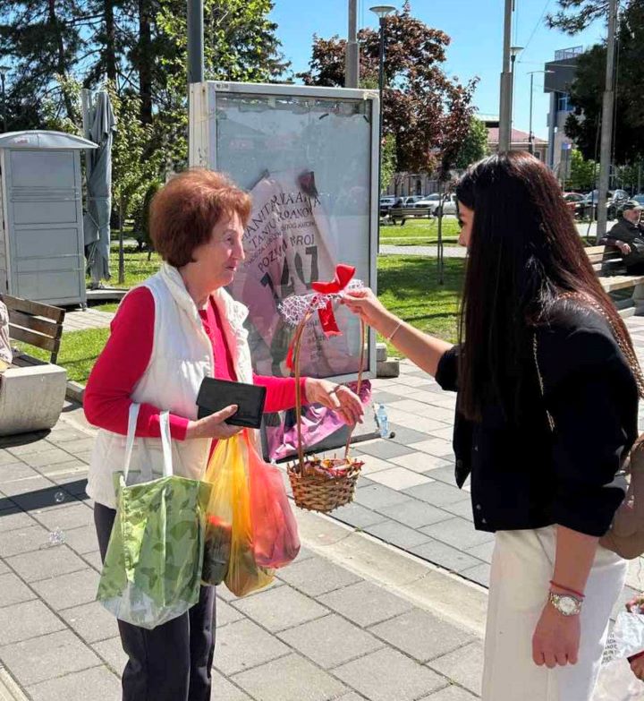 Članice Aktiva žena u saradnji sa Aktivom mladih Gradskog odbora Socijalističke partije Bijeljina u tradicionalnoj akciji, povodom Vaskrsa, na gradskom trgu u Bijeljini podijelile su 1.000 farbanih jaja građanima Semberije.