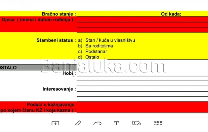 “Sva ostala pitanja, označena žutom i crvenom bojom, kandidat nije u obavezi da popuni, jer nisu u skladu za važećim propisima”, istakla je ona.