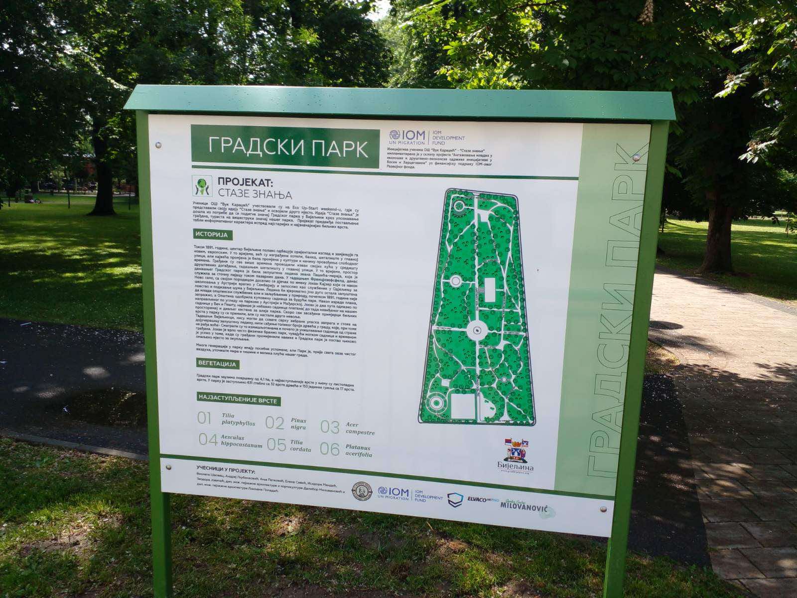 U bijeljinskom Gradskom parku šetače i rekreativce danas su dočekale zanimljive table koje opisuju istorijat nastanka Gradskog parka i šetačima daju detaljna uputstva o vrstama drveća koje raste decenijama u ovoj jedinstvenoj gradskoj prirodnoj oazi.