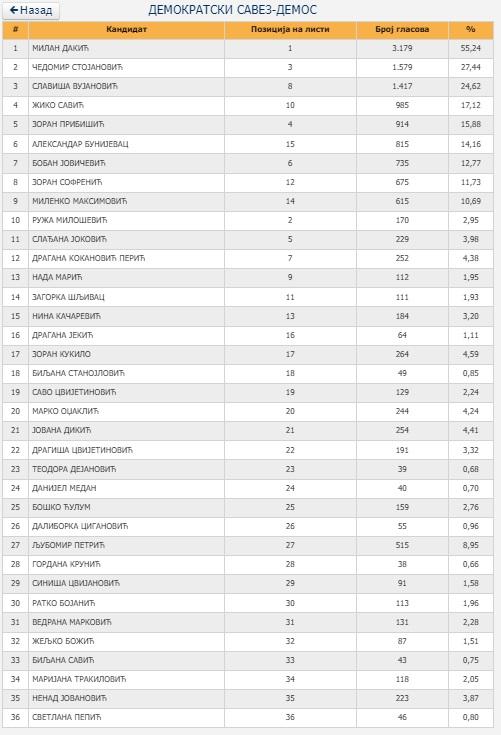 Na trećoj poziciji po broju osvojenih glasova je nosilac liste DEMOS-a, Milan Dakić sa 3.179 glasova.