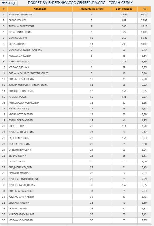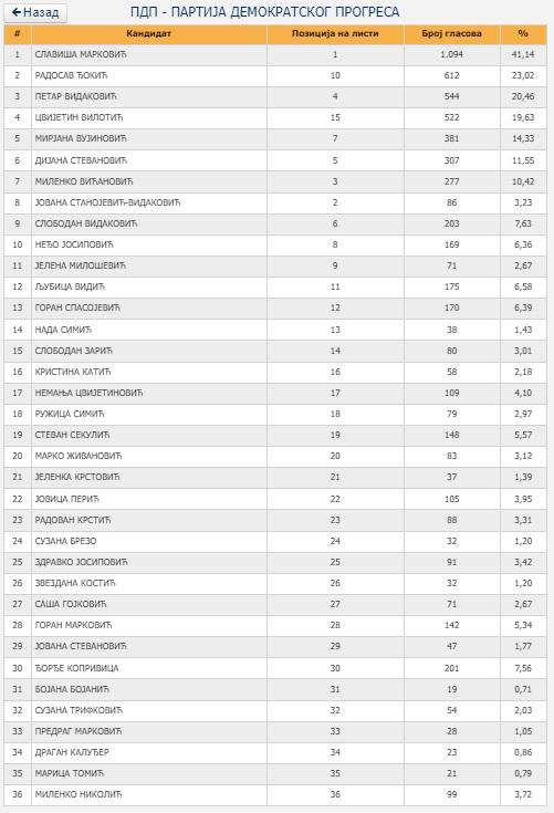 Sreten Vučković, nosilac liste Srpske demokratske stranke volja naroda osvojio je 3.251 glas, što je ujedno i drugi najbolje ostvareni rezultat odmah iza Bojana Savića.