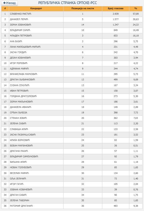 Kada je riječ o odbornicima, najviše glasova dobio je nosilac liste SNSD-a Bojan Savić i predvodi ovu listu sa 6.876 glasova.