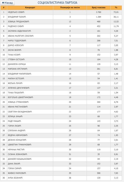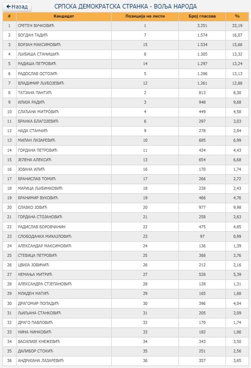 KOMPLETAN SPISAK po odborničkim listama, na osnovu 100 odsto obrađenih glasova pogledajte u tabelama: