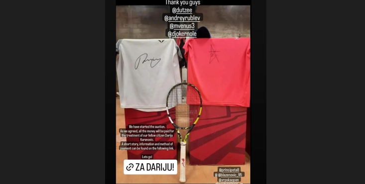 Naime, oni su tokom turnira prikupili brojne rekvizite sa potpisima Novaka Đokovića, Dušana Lajovića, Andreja Rubljova i Majkla Venusa koji će se naći na aukciji, a sav prihod iće za liječenje Banjalučanke Darije Karanović.