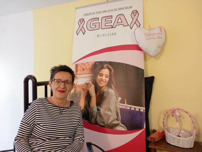 “Karcinom, ne samo dojke, nego uopšte maligno oboljenje, još uvijek je na našim prostorima tabu tema. Same oboljele osobe se povlače,nežele da istupe javno, žele da što brže prođu kroz proces liječenja i da se vrate normalnom životu. I to je sve u redu. Međutim, smatram da smo dužne, ukoliko smo prošle kroz sve to, da budemo na raspolaganju drugima, da prenesemo iskustva, i zato je postojanje Udruženja GEA važno. Imamo Viber grupu, dostupne smo na društvenim mrežama, tako da se, zaista, sve žene koje osjećaju potrebu mogu javiti”, kaže Drinićeva.