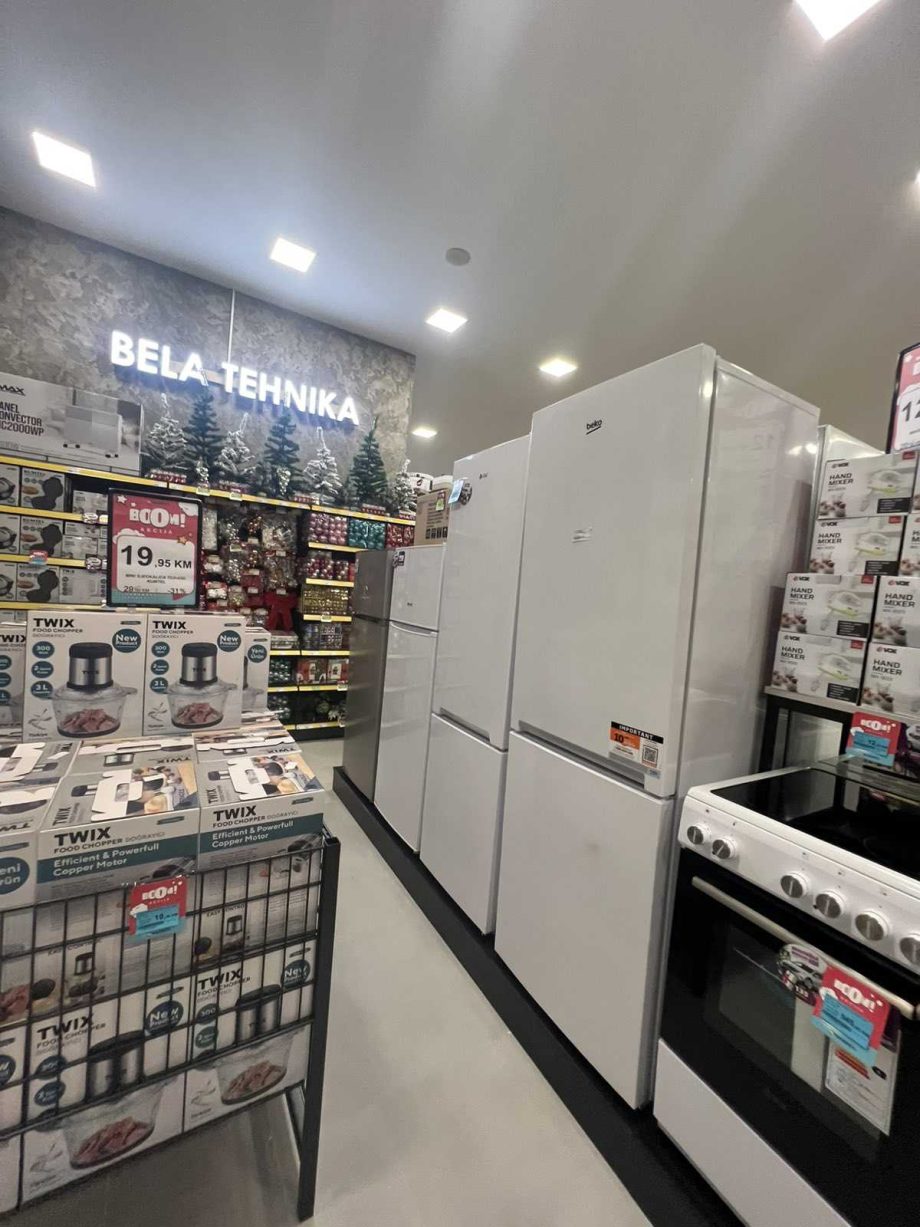 Ono što ovaj objekat izdvaja od drugih u okolini je poseban odjel bijele tehnike, jedini takvog tipa na ovom području. Kupcima su od danas dostupni frižideri, zamrzivači, mašine za veš, ugradbena tehnika i mali kućanski aparati renomiranih proizvođača, uz promotivne cijene i mogućnost informisanja direktno u marketu.