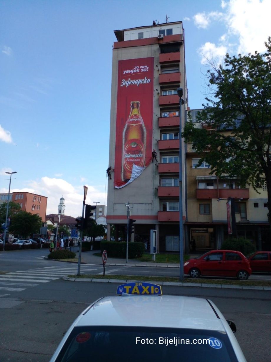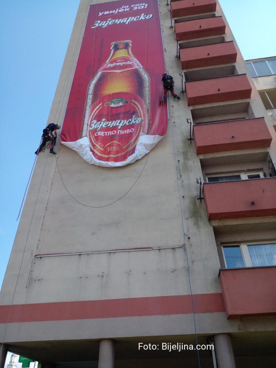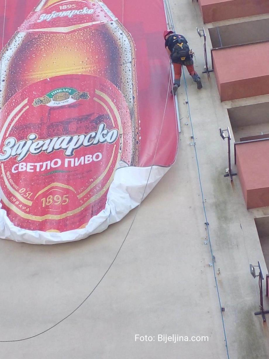Alpinistička vještina je neophodna da bi se postavio reklamni pano.