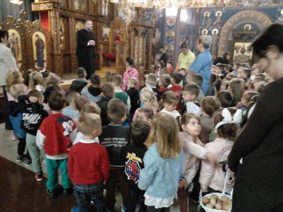 Mališani iz Vrtića „Čika Jova Zmaj“, smješteni u  objektu „Đurđevak“, zajedno sa svojim vaspitačima i sveštenikom Saborne crkve Srđanom Radmanovićem danas su učestvovali u radu Vaskršnje radionice koja je organizovana u dvorištu saborne crkve.