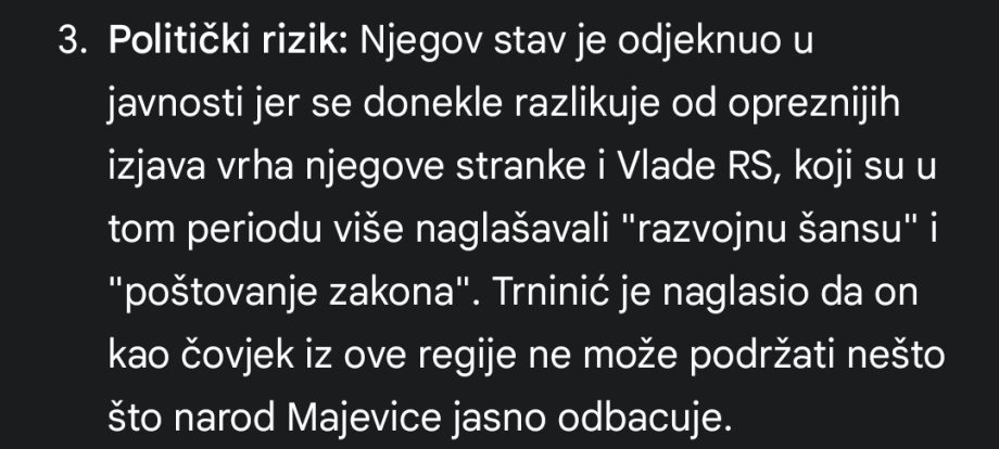 1. Milan Trninić je jedini poslanik, osim poslanika opozicije, iz cijele Republike Srpske, koji je podržao deklaraciju gospodina Rade Savića načelnika Opŝtine Lopare vezano za protivljenje rudarenja litijuma.