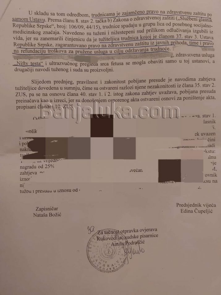 “Predmeti su se završili tako da je Vrhovni sud RS potvrdio da trudnice imaju pravo da koriste zdravstvenu zaštitu na teret javnih prihoda. U mome predmetu, trudnici je nakon presude Vrhovnog suda RS, FZO u cjelosti refundirao troškove za pomenute testove”, rekla je Stankovićeva ističući da se radilo o medicinski indikovanim slučajevima.