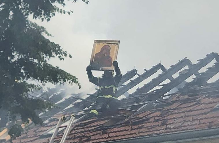 Na Instagramu je osvanuo i snimak na kom se vidi da je iz požara izvučena jedna ikona, koju vatra nije zahvatila.