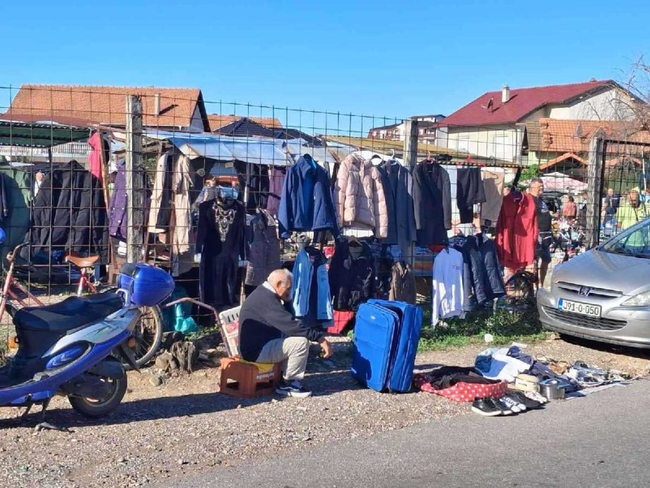 Život se, nekako stidljivo, na sat ili dva, utorkom i petkom preseli na ovu pijacu. Prodavci nude trenerke za pet maraka, patike za deset, dukseve za petnaest maraka. Ukoliko si spreman da se cjenkaš, sve to može da se dobije i po znatno nižoj cijeni.
