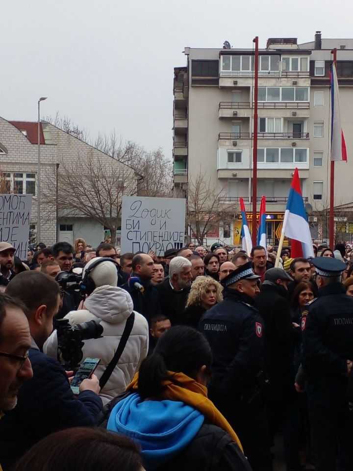 “Sistem te laže, ne vjeruj šta ti kaže”, “Pomoć studentima nije zločin”, “Dodik bi i stipendije pokrao”, piše između ostalog na transparentima koje su građani podigli ispred zgrade policije.