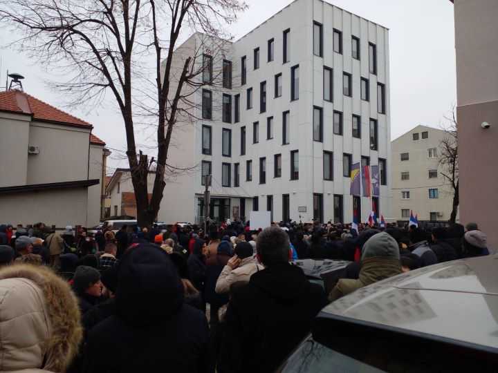 Građani i funkcioneri SDS-a stigli su ispred Okružnog javnog tužilaštva Bijeljina, gdje će nastaviti protest zbog hapšenja Ljubiše Petrovića, gradonačelnika Bijeljine.