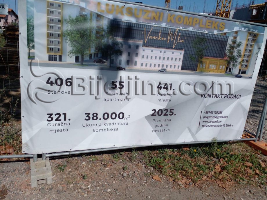 Radovi na izgradnji stambeno – poslovnog kompleksa “Vanekov mlin”, sa ukupno 406 stanova i 55 poslovnih apartmana izvode se planiranom dinamikom.