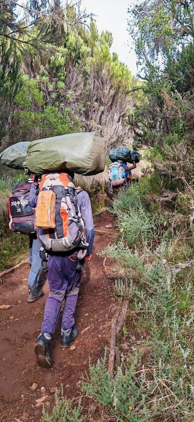 Jako je toplo, vazduh je vlažan, atmosfera puna isparenja. Ima i majmuna na toj dionici puta. Kilimandžaro je i nacionalni park, zaštićeno područje. Tu nema motornih vozila. Sve naše stvari nose lokalni vodiči na glavama. Njihova dnevnica je oko deset dolara.