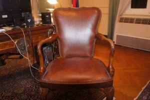 “To je stolica u kojoj je Armstrong sedeo u kancelariji kao izvršni direktor americkog Saveta za spoljne odnose. Transportovao ju je brodom do Italije, a zatim autom do Beograda na poklon kralju Aleksandru uz poruku – Vi ne možete da budete član Saveta, ali na ovoj stolici bar možete tako da se osećate”, priča Bisenić.