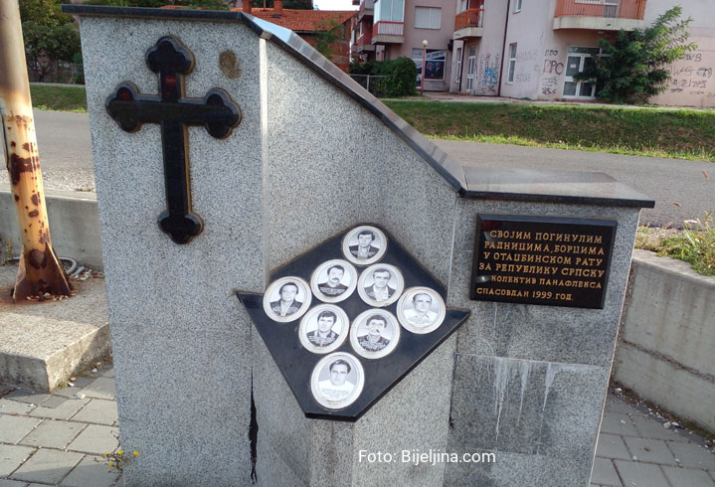 “Svojim poginulim radnicima, borcima u Otadžbinskom ratu za Republiku Srpsku – Kolektiv “Panafleksa” na Spasovdan 1999. godine”.