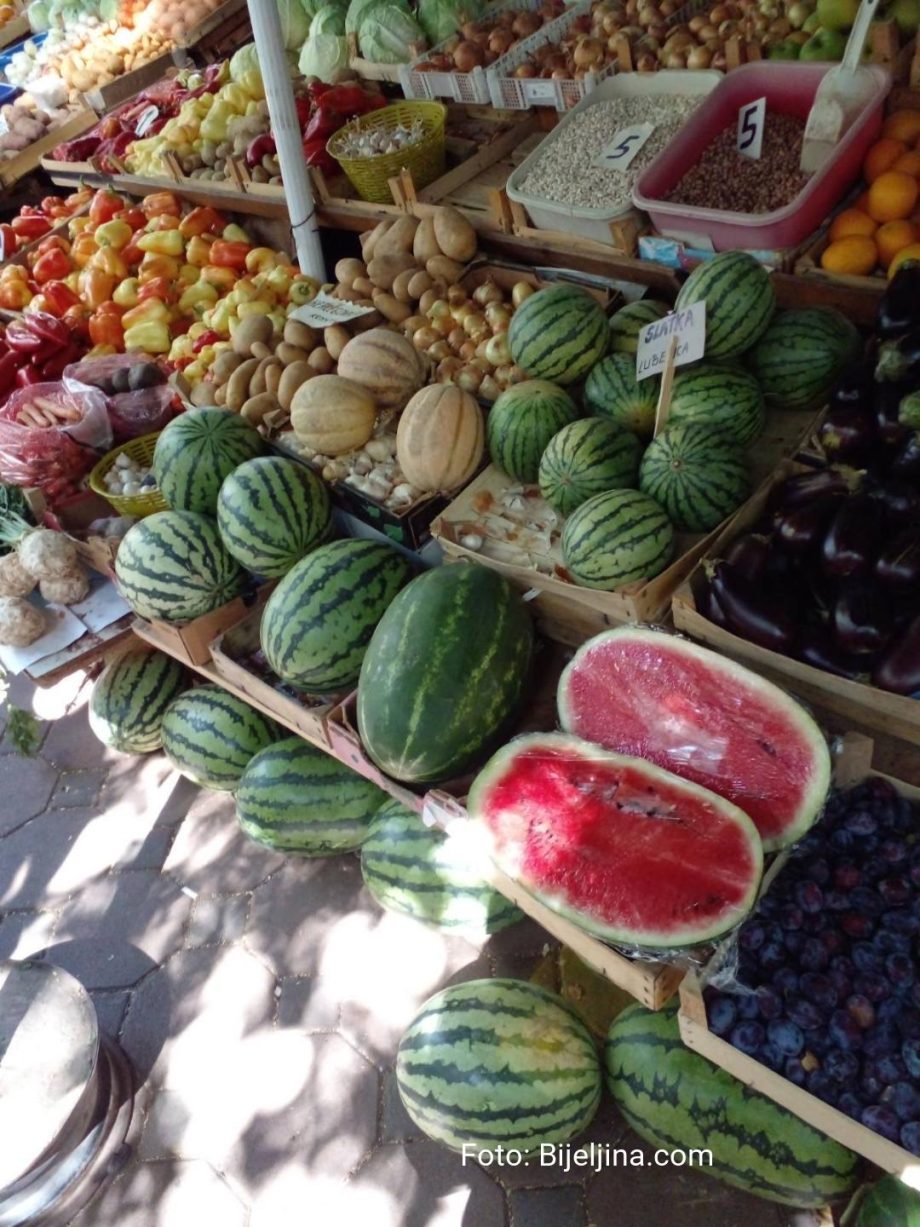 Na bijeljinskoj Zelenoj pijaci, uprkos nesnosnim vrućinama, ovih dana nudi se obilje domaćih proizvoda.