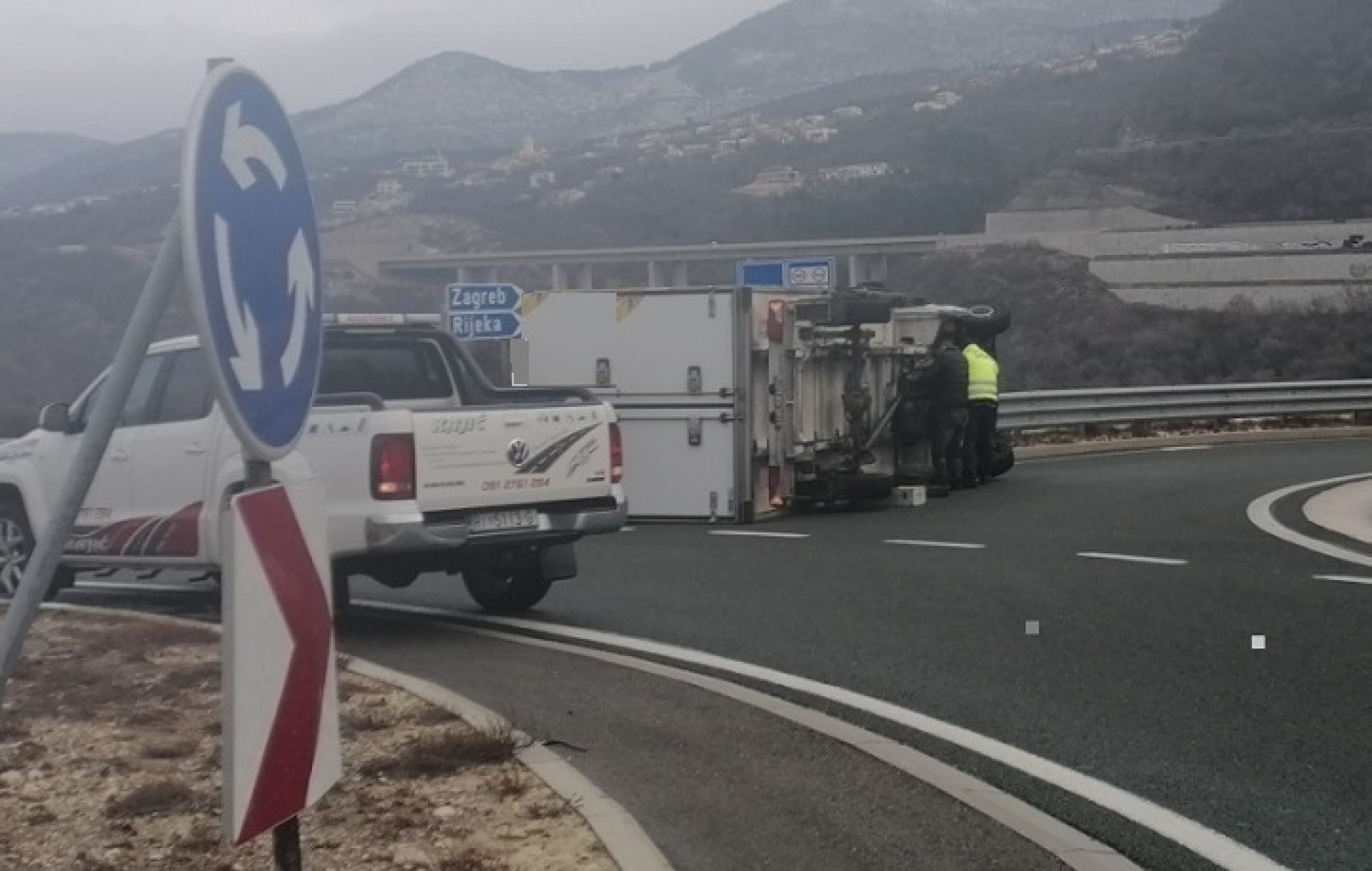 Orkanska bura prevrnula je kamion kod Križišća u Hrvatskoj, gdje snijeg i jak vjetar već danima otežava saobraćaj na putevima u Lici i Gorskom kotaru.