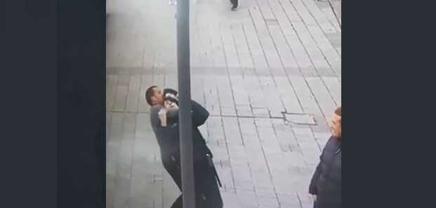 Prema snimku koji se širi društvenim mrežama, napadač je prišao službeniku s leđa, oborio ga na tlo i potom pokušao da ga savlada.