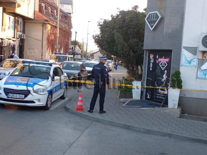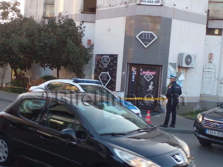 Prostor oko diskoteke “Džil” u Bijeljini, gdje se noćas dogodilo ubistvo policijskog inspektora obezbijeđen je žutom trakom. Jedan policajac dežura ispred ulaza u klub.