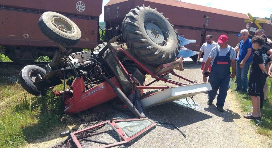 Teretni voz naletio na traktor koji se prevrnuo (Foto)