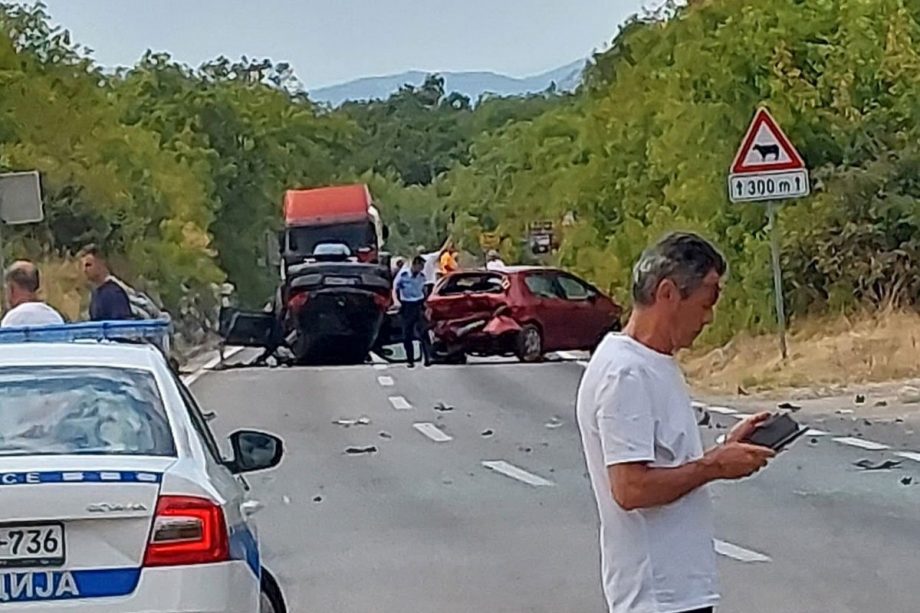 Četiri osobe povrijeđena su u saobraćajnoj nezgodi koja se iza 14 časova dogodila u mjestu Duži, na magistralnom putu Trebinje – Dubrovnik.