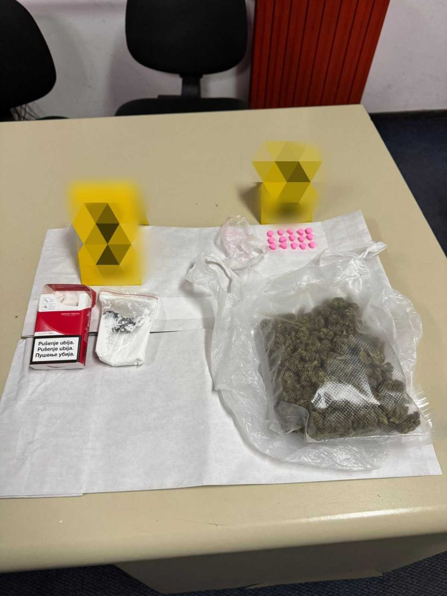 “Na osnovu Naredbe Osnovnog suda u Bijeljini, a uz prethodnu saglasnost dežurnog tužioca Okružnog javnog tužilaštva Bijeljina, izvršen je pretres lica i vozila koje je koristio osumljičeni, kojom prilikom je pronađeno i privremeno oduzeto: kutija od cigareta sa pvc paketom u kojem se nalazi bijela praškasta materija koja svojim izgledom asocira na opojnu drogu „spid-amfetamin“ ukupne mase 54,2 grama, pvc paket u kojem se nalazi biljna materija koja svojim izgledom asocira na opojnu drogu „marihuanu“ ukupne mase 101,4 grama i 15 komada tableta roze boje koje svojim izgledom asociraju na opojnu drogu ‘ekstazi””, saopšteno je danas iz PU Bijeljina.
