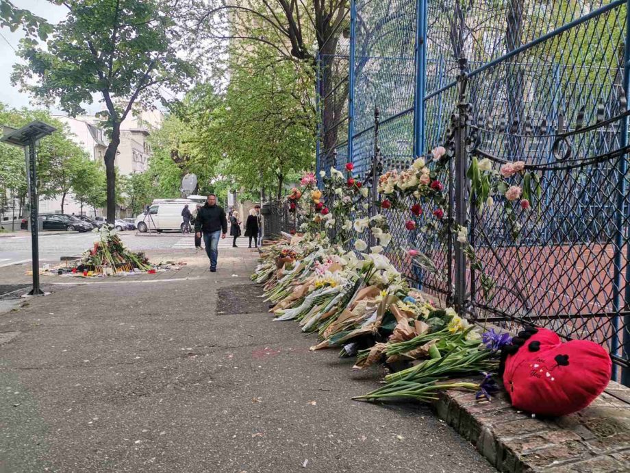 Trotoarom kojim su danas trebali da prolaze đaci, teče vosak od svijeća koje još uvijek gore za nedužno stradalu djecu, uprkos vjetru.