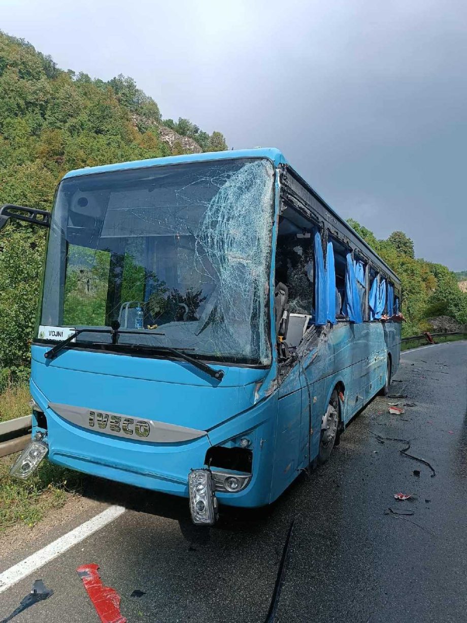 Autobus Oružanih snaga BiH kretao se od Bijeljine prema Tuzli, a iz suprotnog smjera se kretao kamion i prešao je dijelom u traku u kojoj se nalazio autobus i zakačio ga s lijeve strane.