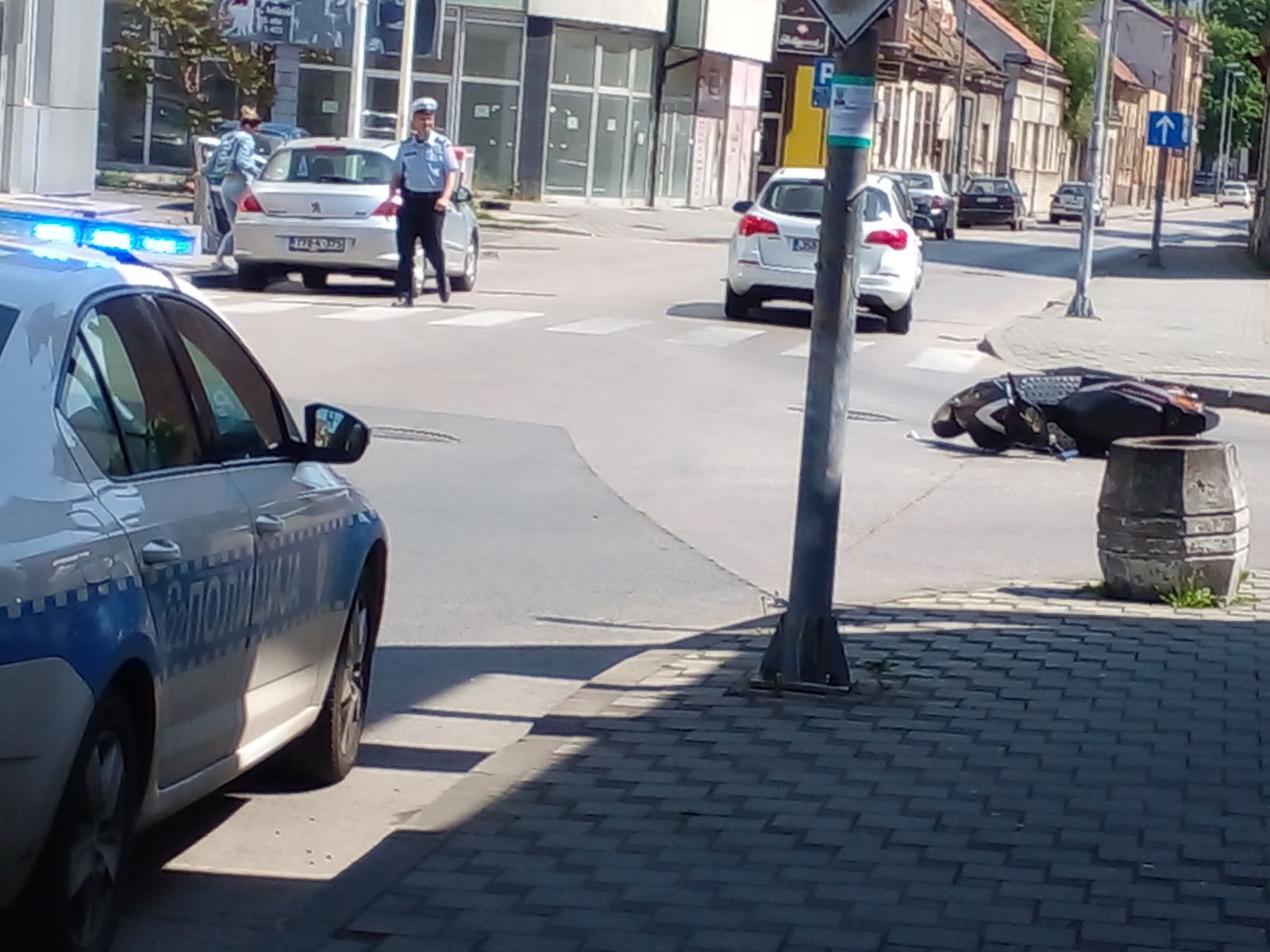 U saobraćajnoj nezgodi kod Autobuske stanice, u centru grada, učestvovao je vozač mopeda, koji se na raskrsnici prevrnuo.