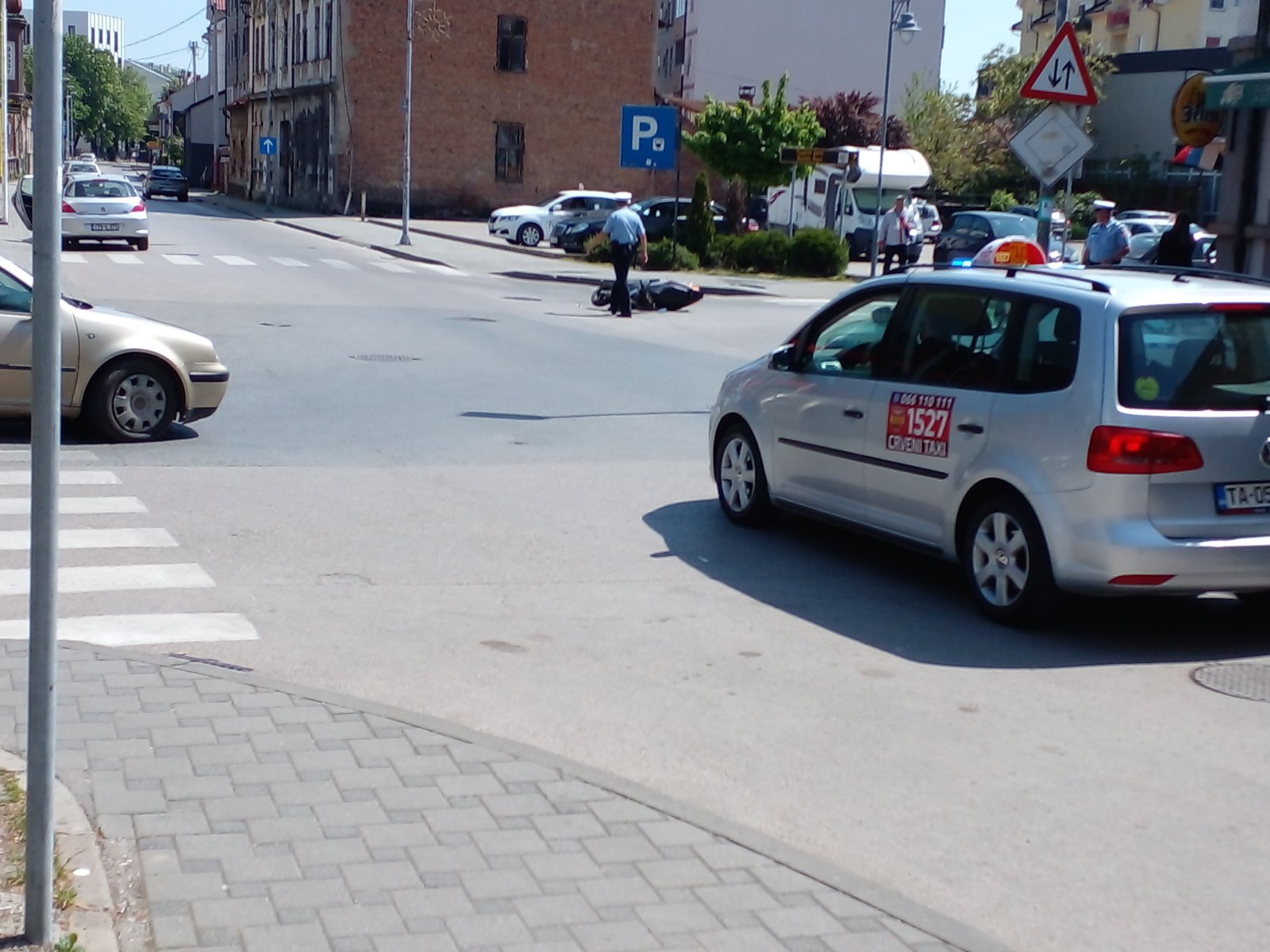 U saobraćajnoj nezgodi kod Autobuske stanice, u centru grada, učestvovao je vozač mopeda, koji se na raskrsnici prevrnuo.