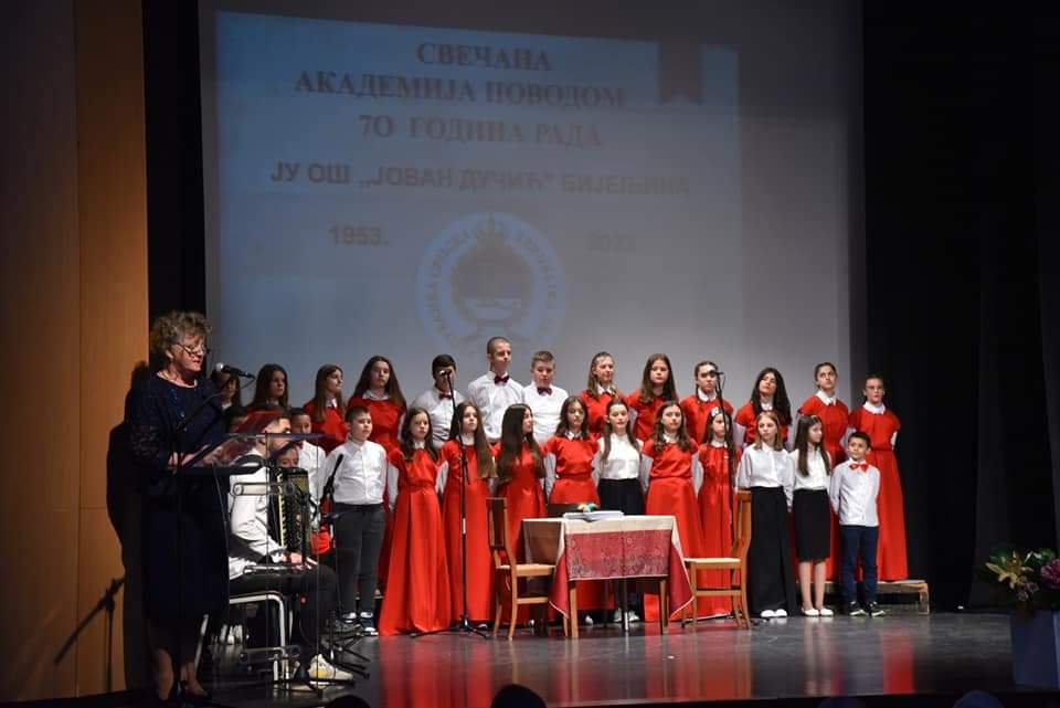 Svečanom akademijom u Centru za kulturu “Semberija” sinoć je obilježen vrijedan jubilej Osnovne škole “Jovan Dučić” – sedam decenija rada, obrazovanja i vaspitavanja brojnih generacija koje su pohađale ovu bijeljinsku gradsku školu.