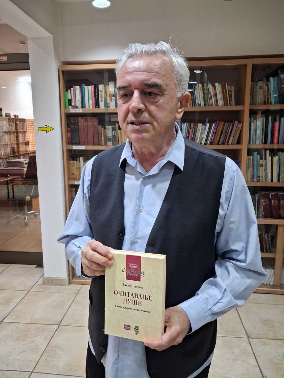 „Knjiga i čitanje su u fokusu pažnje ove večeri, organizovane povodom Svjetskog dana knjige. To je bio razlog da se večeras pojavim u Biblioteci s knjigom „Očitavanje duše“. Knjiga se pojavila prije pet godina, ali je bila rijetko promovisana. Pokušao sam u knjizi da upotrijebim i naučni pristup o čitanju, što je pomalo i komplikovana stvar. Ovo je najprirodniji pristup. Svi mi čitamo i imamo svoju priču o čitanju. Neko od nas sjedne i zapiše to što misli o čitanju i o knjigama, dok većina nema taj predumišljaj pisanja. Pronašao sam vrstu otvorene forme i u ovu knjigu je stalo sve ono što je izašlo u jednom dahu, upravo u vrijeme korone. Ovo mi je, inače, najdraža knjiga, jer me je lagano i bezbjedno, bez ikakve depresije, provela kroz taj period prinudnog pritvora“, kaže Popović, ističući da je u knjizi pisao o onome što je u životu čitao, analizirajući u kakvim situacijama je čitao i u kakvom okruženju.