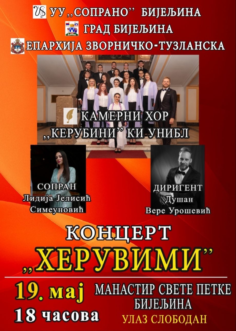 Na koncertu će nastupiti: sopran Lidija Jelisić Simeunović i Kamerni hor “Kerubini” KI Univerziteta u Banja Luci pod dirigentskom palicom Dušana V. Uroševića.